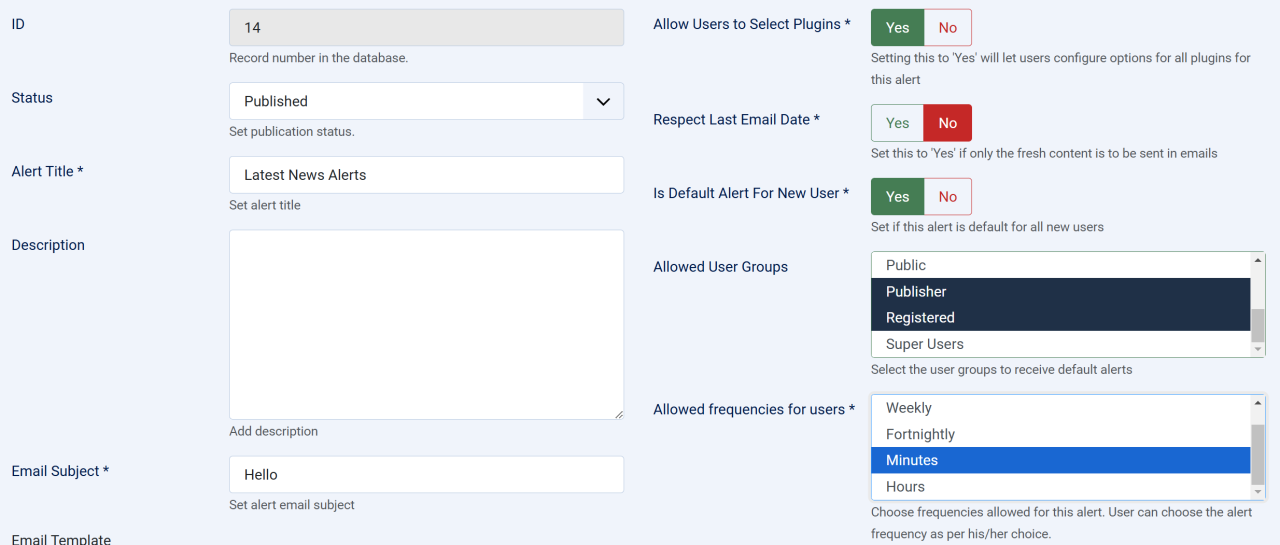 With this release, we have now introduced a feature where the allowed user groups can be selected to receive default alerts created for new alerts in JMailAlerts. Note, this will only work for Joomla 4 and Joomla 5 users.