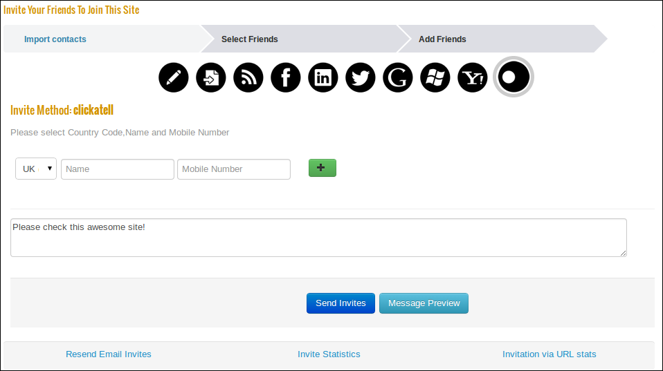 With this feature, we take Viral invitations to a whole new level with a huge increase in reach. SMS Invitations allow you to send Invitations via SMS by specifying the Name and Cell Number of the person you are inviting. In addition, you also have the option of sending a quick personal message with the invite.