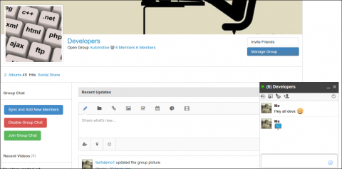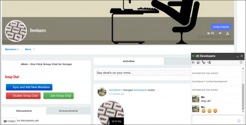 Using JBolo Group Chat Module, JomSocial group admins can start a dedicated group chat with the group members in one click. ;)