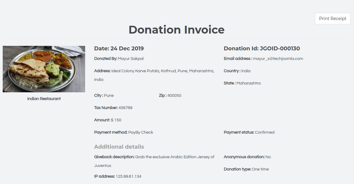 New Donation Receipt UI