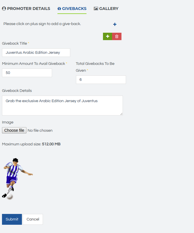 In addition to the Giveback description, you can now specify a short give back title for your givebacks.