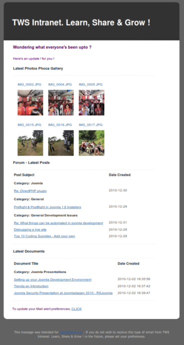 We are now using this on our Intranet for almost a month now & we love the results.. Read on to see actual usage statistics & see how an alert email looks when there is content available from all the plugins..