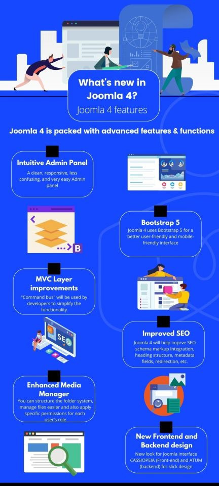 Joomla 4 offers tons of capabilities and improvements and comes with new technologies like Bootstrap 5, MVC layer, PHP7, and more. We will discuss them in detail below.