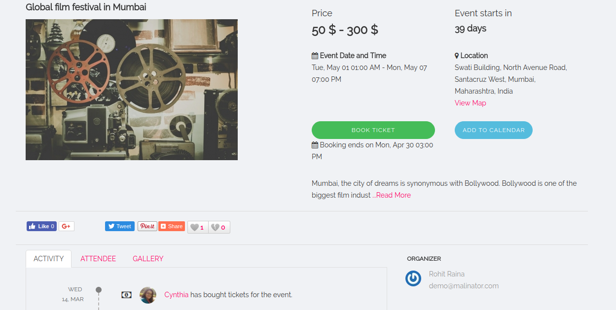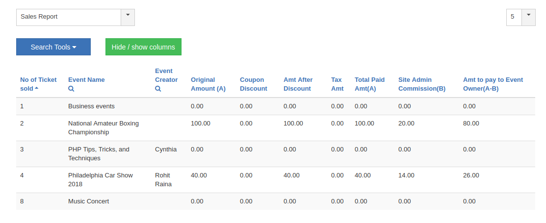 Sales report is important from manager’s perspective considering the admin commissions and the amount to be paid to event owner for the events if applicable.