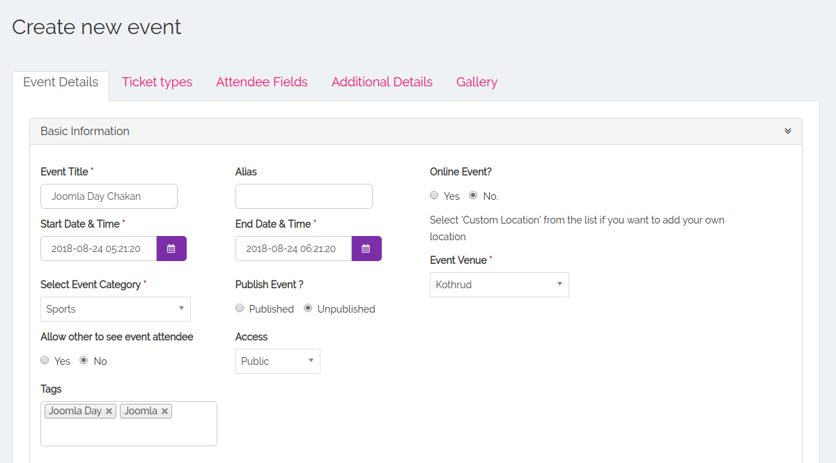 With JTicketing 2.3.0, we have added Joomla tag support for events. Site owners have been given a fantastic way to organize the events on their website.