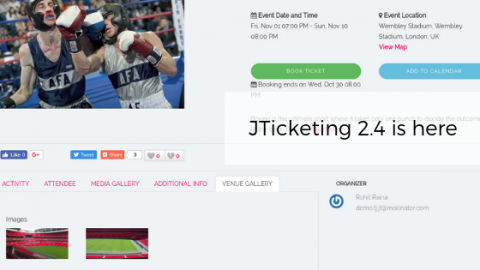 We are very excited to bring you a brand new release of JTicketing, version 2.4. This release brings improvements to the coupon system as well as a brand new venue gallery which is a great way to show off your venues. The Coupons system now allows the creation of Vendor specific coupons, Event specific coupons and also allows creation from the frontend! Read on for complete details of this release.