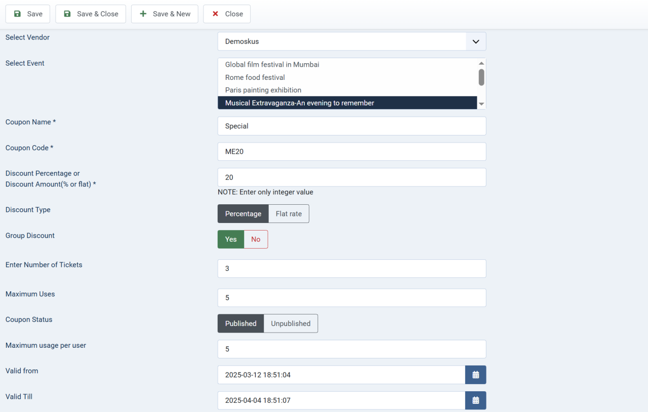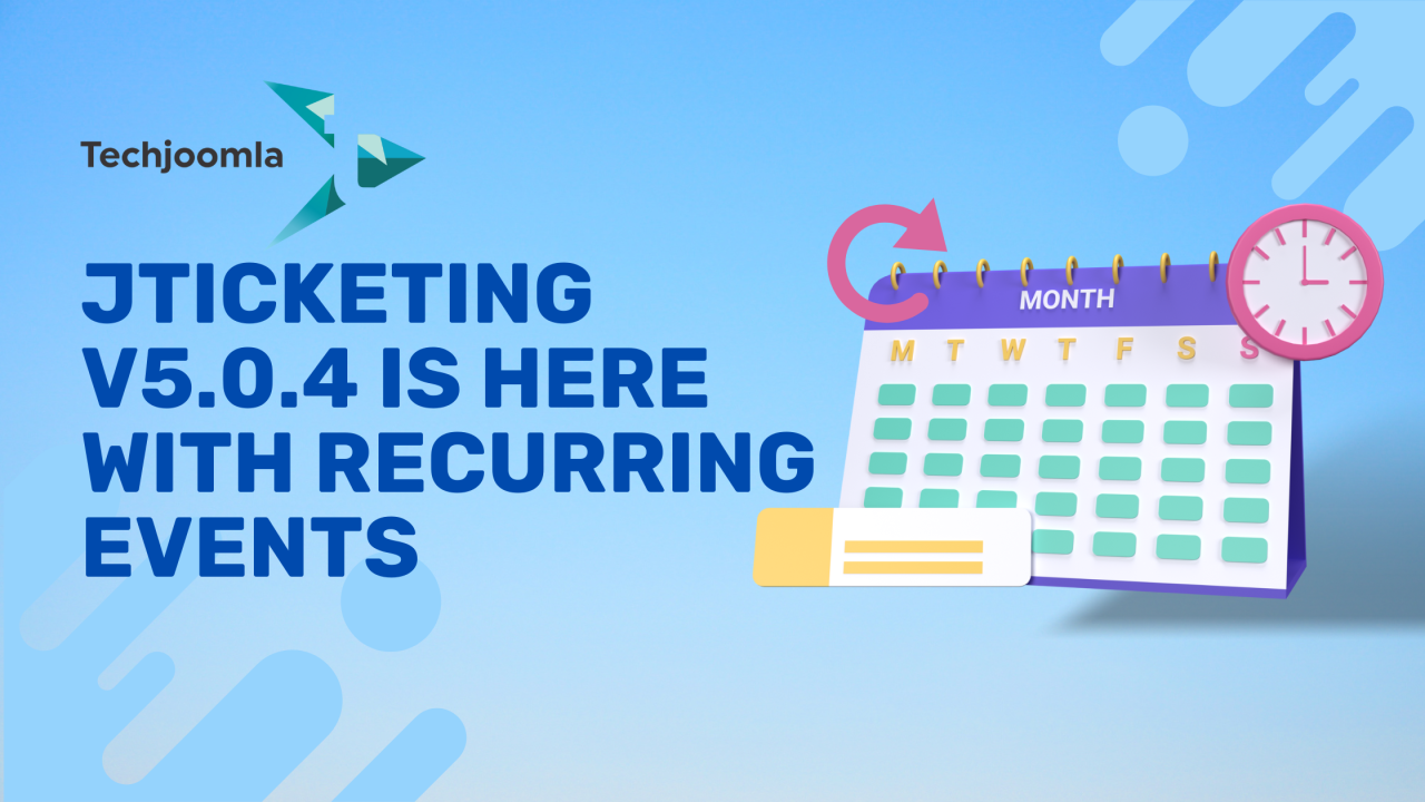 We're incredibly excited to announce the release of JTicketing 5.0.4, a major update packed with features designed to elevate your event management experience. This release introduces three highly requested features – recurring events, group discounts, and nearby events – alongside crucial bug fixes, making JTicketing more robust and user-friendly than ever. Whether you're organizing workshops, conferences, performances, or local gatherings, JTicketing 5.0.4 empowers you to streamline your workflow and maximize attendee engagement.
