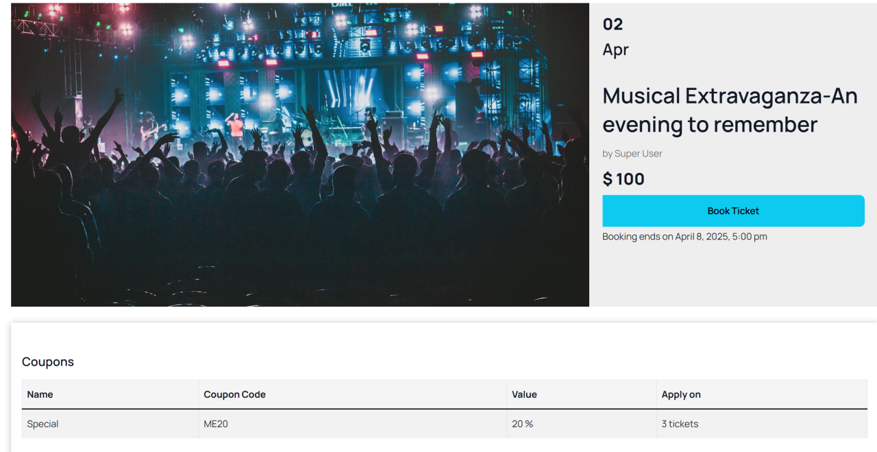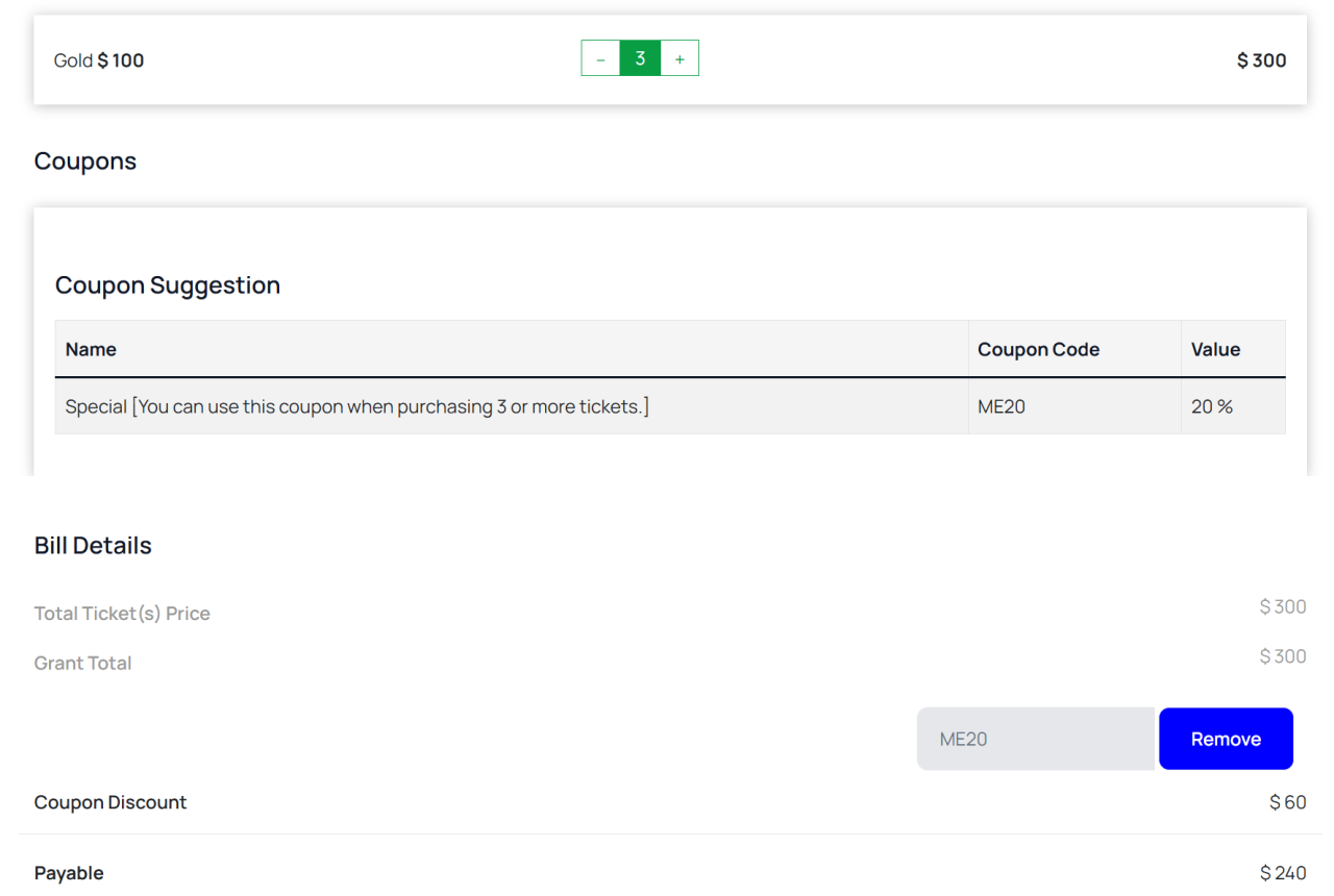 This feature is also independent of ticket types, meaning that the discount applies to the total number of tickets purchased.
