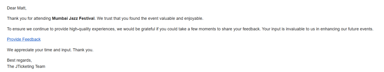 Easily collect feedback from attendees post event completion using the RS Form integration in JTicketing. This allows you to gain valuable insights, understand attendee satisfaction, and continuously improve your future events.