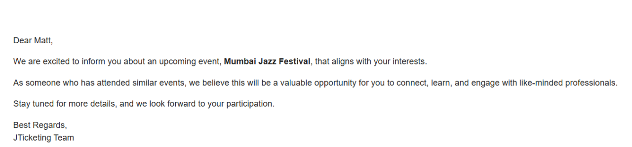 One of the most awaited features in JTicketing is here with event attendees getting personalized event suggestions based on their browsing history and past ticket purchases once they login to the site. This not only improves user experience but also increases the chances of higher ticket sales by promoting relevant events to the right audience.