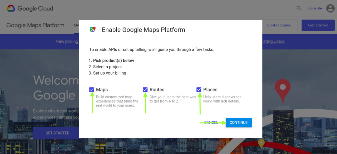 As JTicketing is using free API’s, you will not be charged from Google for displaying Google map location. The only thing you have to do is get a Google API using the steps below.