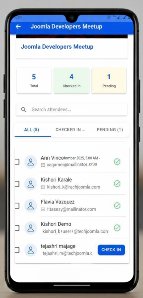 Forget the clipboard and the endless scrolling. Your team can now scan QR codes in seconds or check in attendees with a single tap, transforming your entry gate from a bottleneck into a seamless flow. With real-time attendee management, you have the entire guest list in your pocket. See who's arrived, who's still on the way, and get a live pulse on attendance from anywhere on the floor.