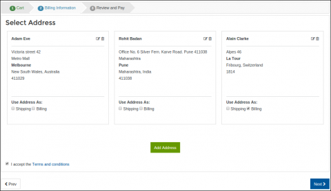 Earlier, you had to manually enter the address if it was not the same which you used previously. Now, we have made sure that you can save multiple addresses in Quick2Cart. Save as many addresses as you want and later you can just quickly select which address you want to use, simple as that. :)