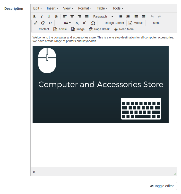 With the release of Quick2Cart 2.9.15, we have provided text editor support for the store description. We have provided more flexibility by enabling site administrators to create a detailed store description for their site using various formatting styles, different fonts, headings and adding Joomla modules. Site administrators can design spectacular looking banners using our free Canva for Joomla plugin in the text editor.