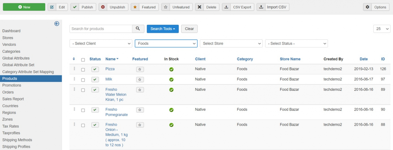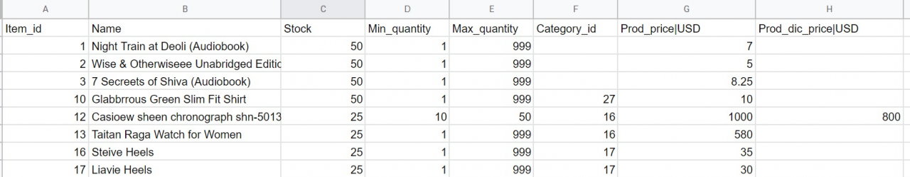 Site admin can easily change the product price, discount price, category ID, minimum quantity, maximum quantity and stock for multiple products using this feature.
