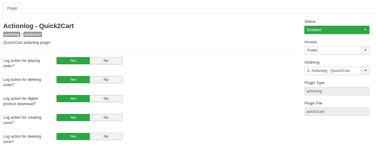 - Actionlog plugin for Quick2Cart logs actions for activities related to orders, zones, products, promotion and payouts, tax rates, orders, shipping profiles and shipping methods