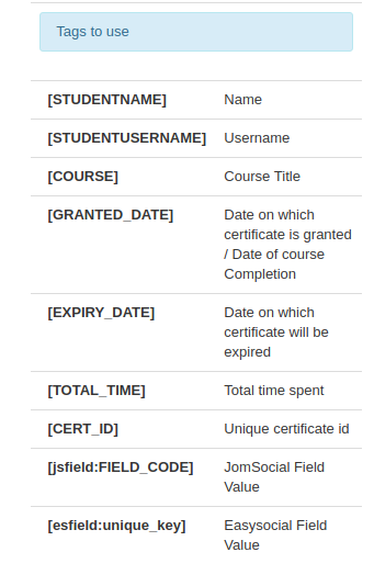 Personalize your certificate by selecting EasySocial and JomSocial fields in your certificate template.