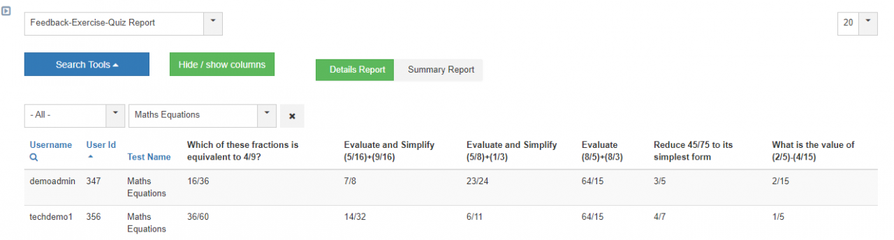 164651 Introduced the Feedback report- Feedback-Exercise-Quiz Report.