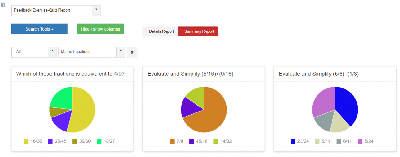 Shika 1.3.36 introduces the feedback-exercise-quiz report that has a summary report that displays each field that has received at least one response in the form of charts.