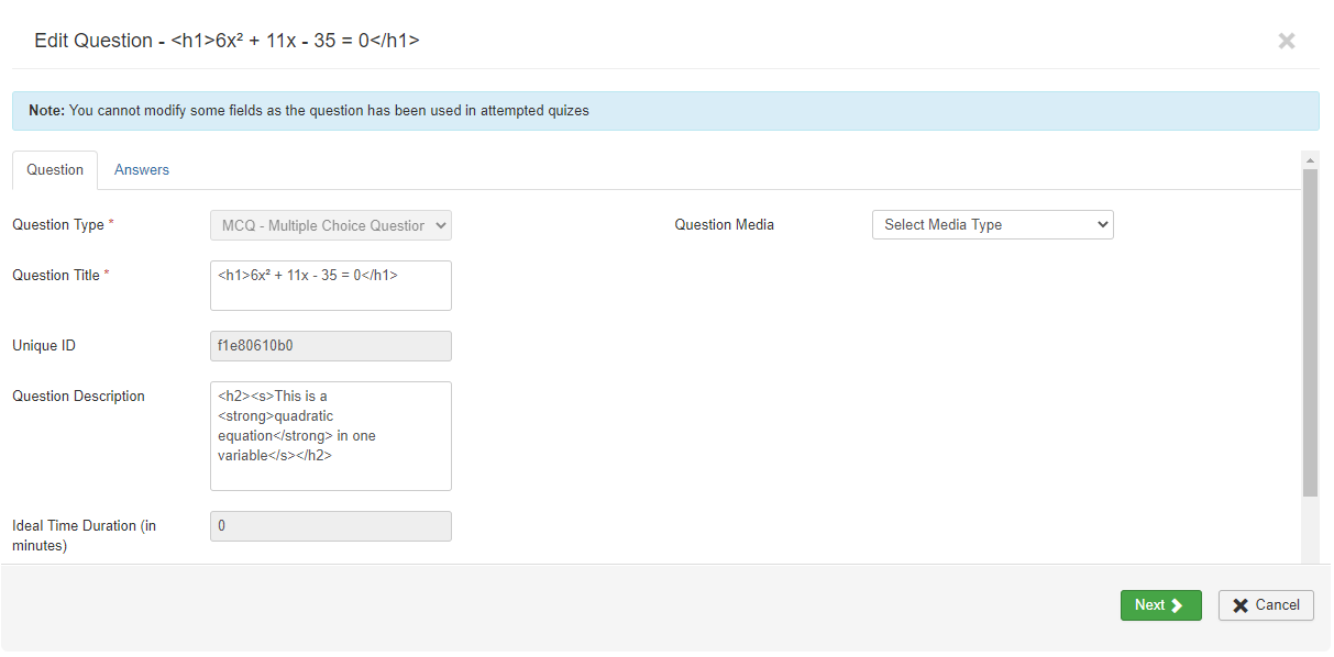 With Shika 1.3.35, we have introduced basic HTML support for question description, question title, answer text and answer comments in quizzes. Site administrators can now add safe HTML tags to question description, question title, answer text and answer comments in quizzes.