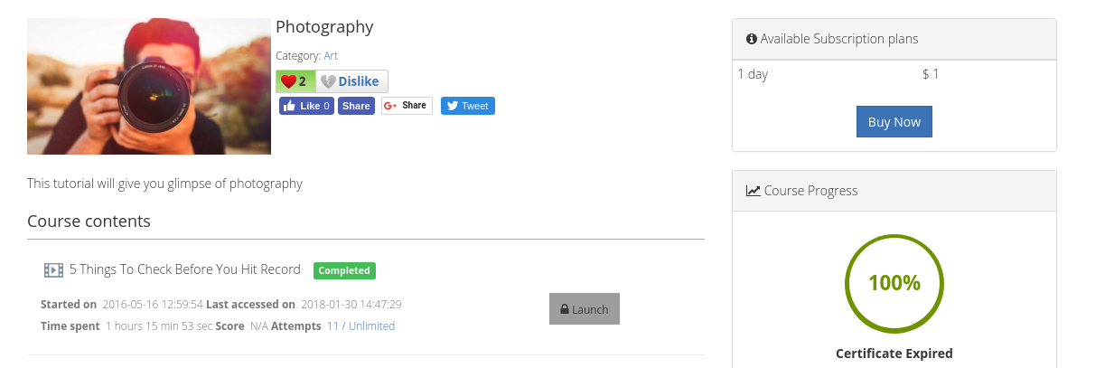 Integrating Facebook, Google+, Twitter-like and share buttons on your course pages is easy as pie in Shika. Users/students can easily share their favourite course pages on social media. Thus, more users gain exposure to the course via social media. The number of shares on social media will further highlight the popularity of the course.
