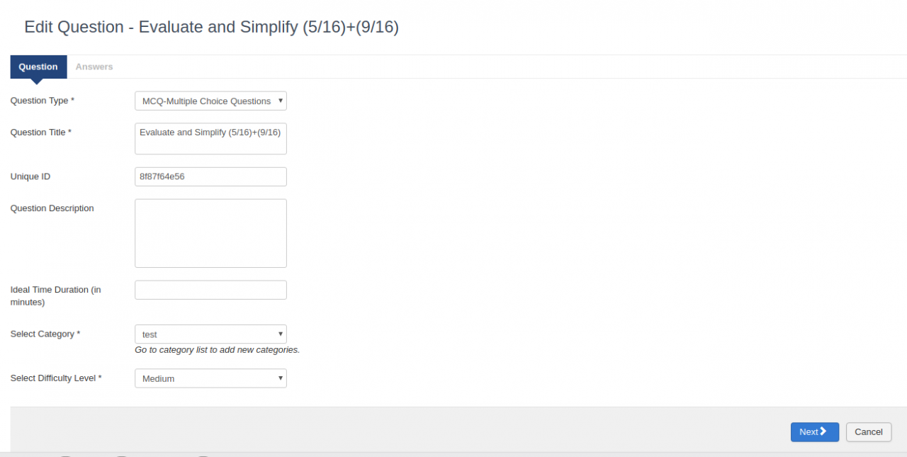 A lot of times you might get question banks that are off the shelf or you might be maintaining them elsewhere before using them in the LMS. You can either choose to enter your own or the system will auto-generate one for you.