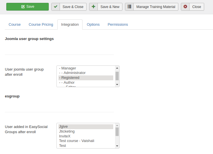 Using the Integration plugin structure, we have now introduced the ability to add a user to a Joomla User group when they enrol for a course. Also the older EasySocial groups integration feature is now refactored as a plugin.