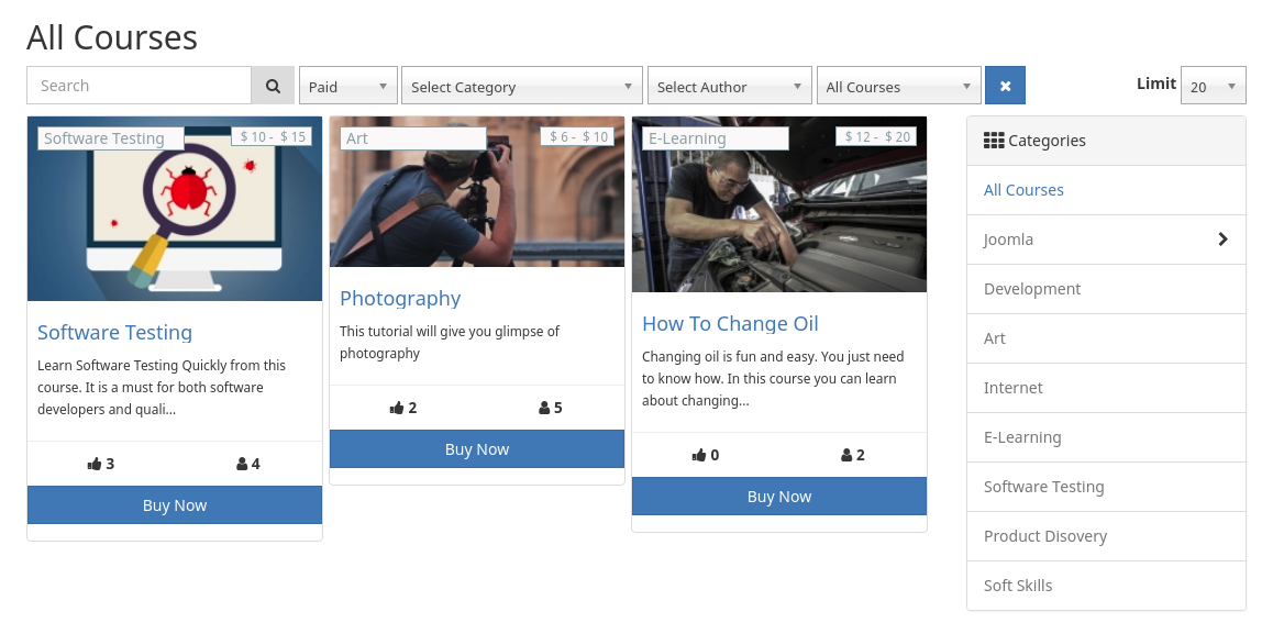 Instead of filtering the categories to search for the respective courses, users can easily identify the courses belonging to the specific categories.