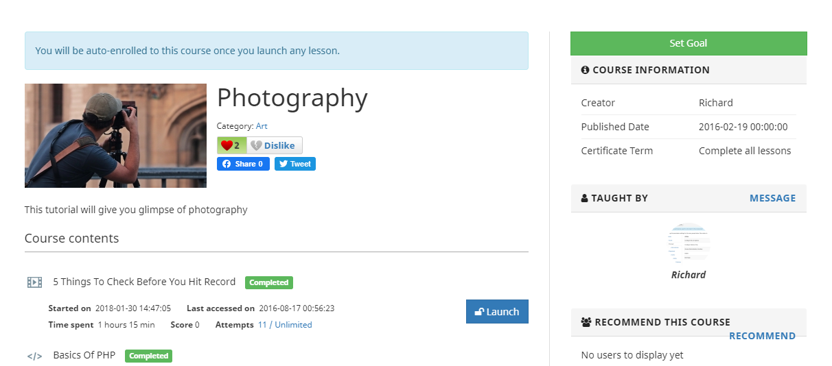 Shika 1.3.31 introduces a configuration that enables users to auto-enrol for free courses. This removes the need to click on the enrolment button to start the course.