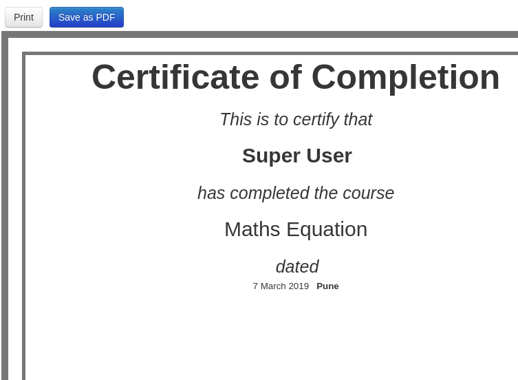 With Shika 1.3.8, we have provided flexibility to Course creators to add custom fields to the certificate in addition to some pre-existing tags. There are multiple types of fields like text, list, calendar, radio etc. These fields are created in course fields and associated with field groups. After setting a value to the field during editing/creating the course, the fields are added to the certificate template and actual value of the field is displayed on the certificate after completing the course.