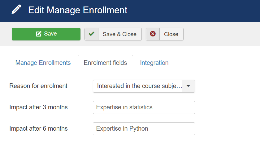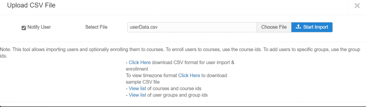 One of the key aspects in learning is being able to derive rich reports, measure impact, ROI & more. This feature allows you to add additional data to a user’s course enrollment to track this additional data. Custom enrollment fields can be used for a variety of use cases. We’ve mentioned just a few here. Add this data using a form or use the CSV import tool to import in bulk.