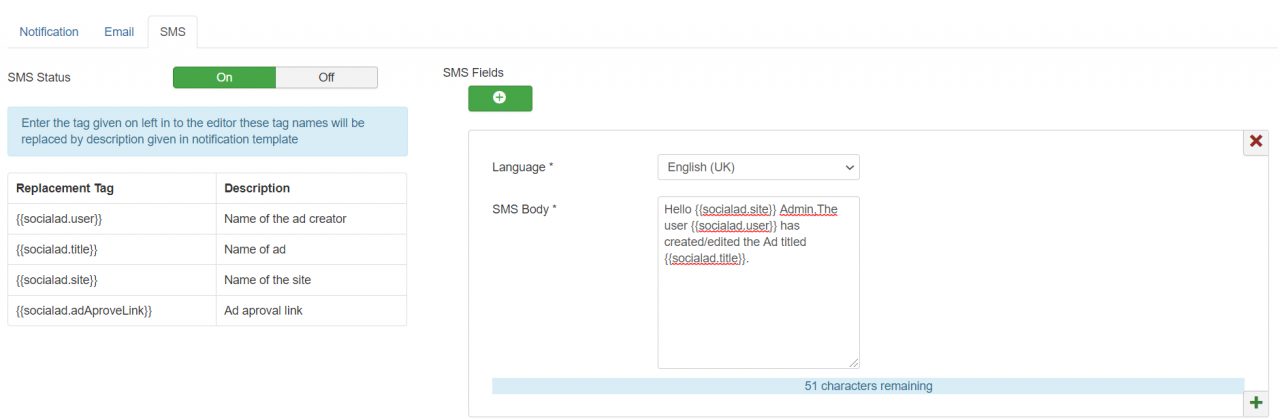 Power up your communications like never before as SocialAds has been integrated with the latest version of TJ Notifications, our infrastructure extension. We have created a Techjoomla twilio plugin for sending SMS and a TJ Notifications mobile number plugin for SMS. The TJ URL Shortener-Bitly plugin has been created for shortening the URL sent via SMS and email.