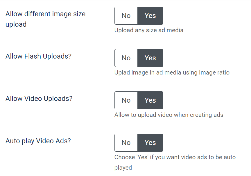 With this configuration, Ad creators can now upload images with exact dimensions that are mentioned as default while creating the ad to improve ad resolution if it’s configured by the site admin or they can upload images with different dimensions.
