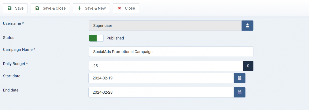 With SocialAds 4.2.1, we have introduced a configuration for site admin to add start date and end configuration for campaigns in wallet mode. This feature was requested by one of our SocialAds subscribers.