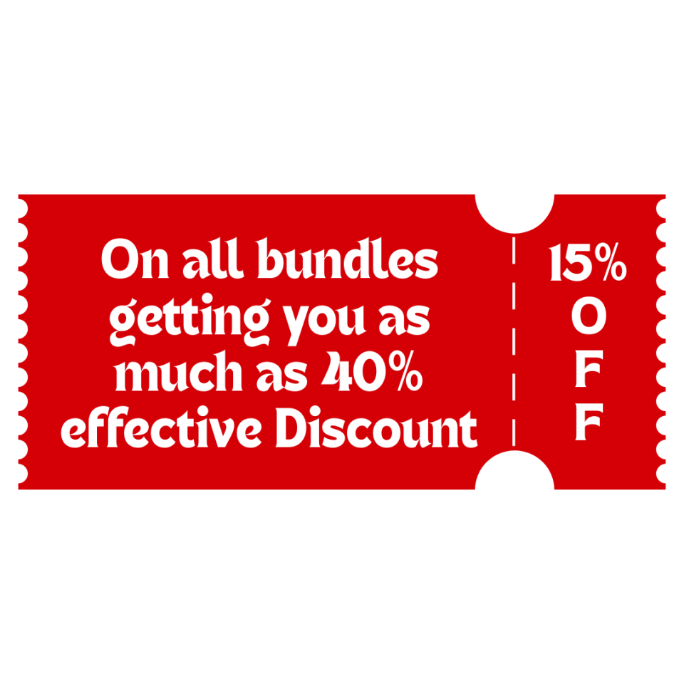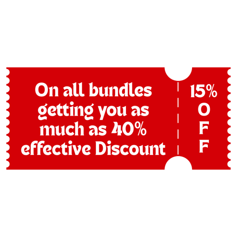 • 15% off on all bundles getting you as much as 40% effective Discount