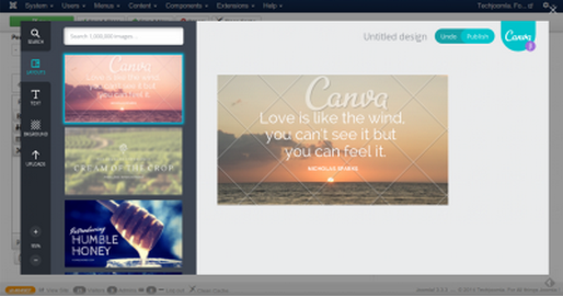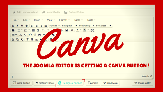 With the Joomla Canva integration plugin, we bring this powerful tool to Joomla. The current Canva integration is an Editor XTD plugin that adds a ‘Design a Banner’ button to your Joomla WYSIWYG editor. Since the plugin extends the editor, all extensions that use the editor including Joomla Content, Zoo, K2, EasyBlog, Quick2Cart, JGive and so many others will automatically benefit from this plugin.