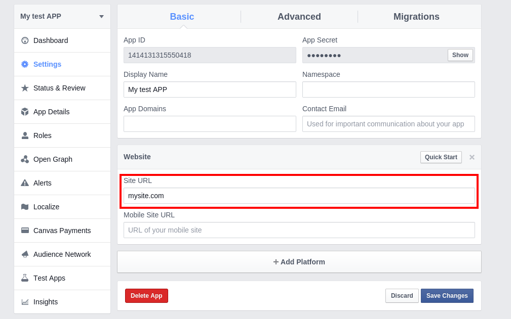 After done with security check, you wil be redirected to the APP dashbord. These go to Settings tab and click on Add Platform button