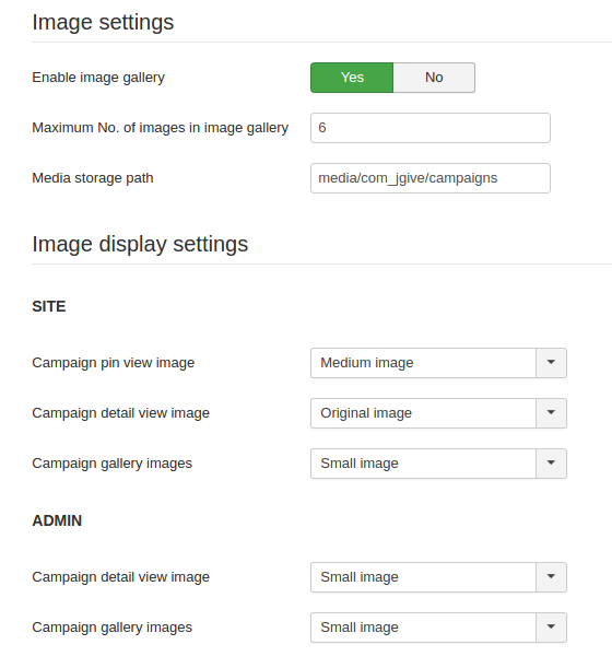 - Enable image gallery - Set 'Yes' to enable image gallery. If yes then the user will be able to upload multiple images for the campaign.