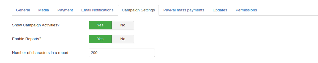 - Enable video gallery - If set 'Yes' It allowed campaign creator to upload video.