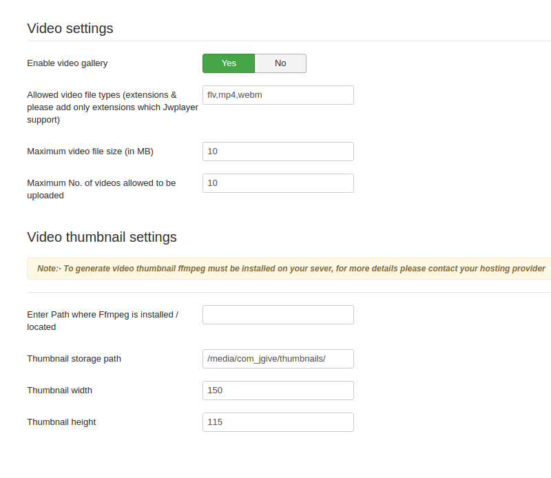 - Maximum video file size (in MB) - Set limit to maximum video file size (in MB).