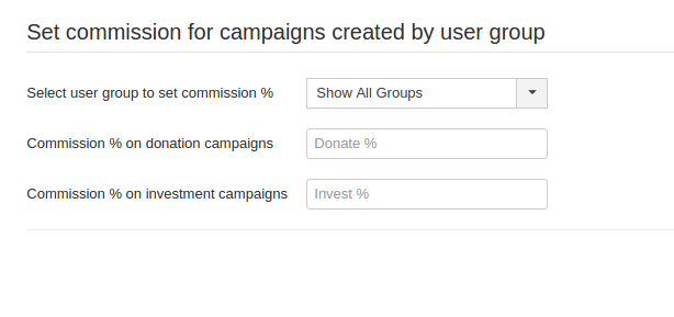 - Select user group to set commission % - Select user group to set commission % for campaign types donate/invest.