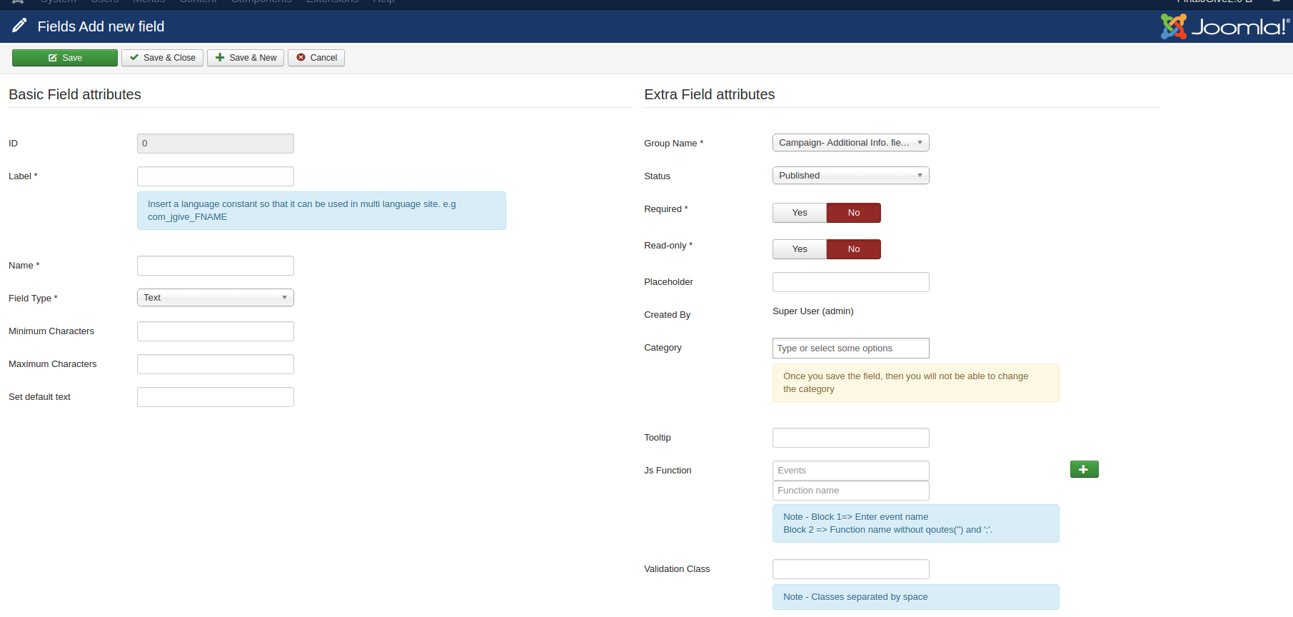 Category: User can set a field as universal or for the specific category. If here select the category this field should display only on category-specific campaign form.