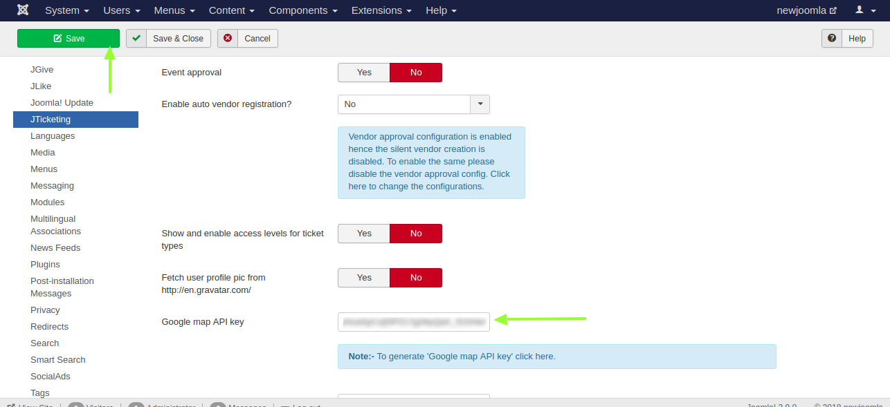Almost Done. All you need to do is copy-paste the key to the JTicketing component configuration and save the configuration.