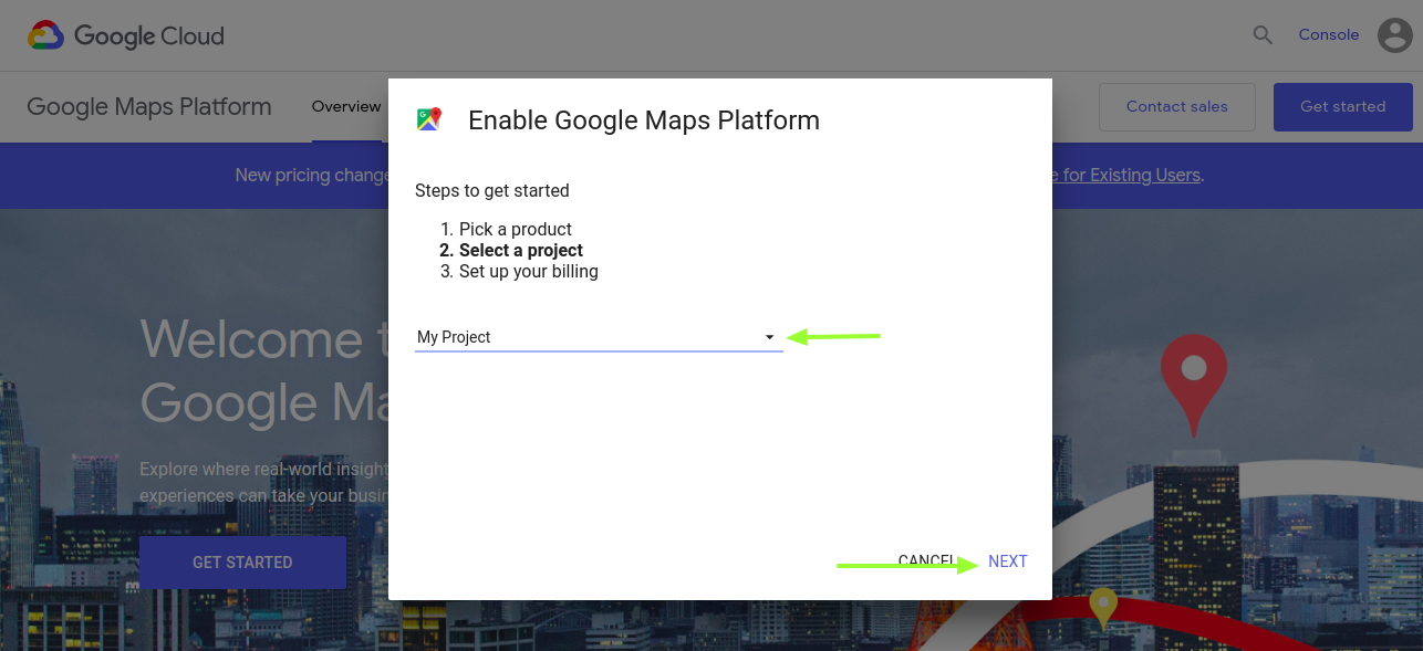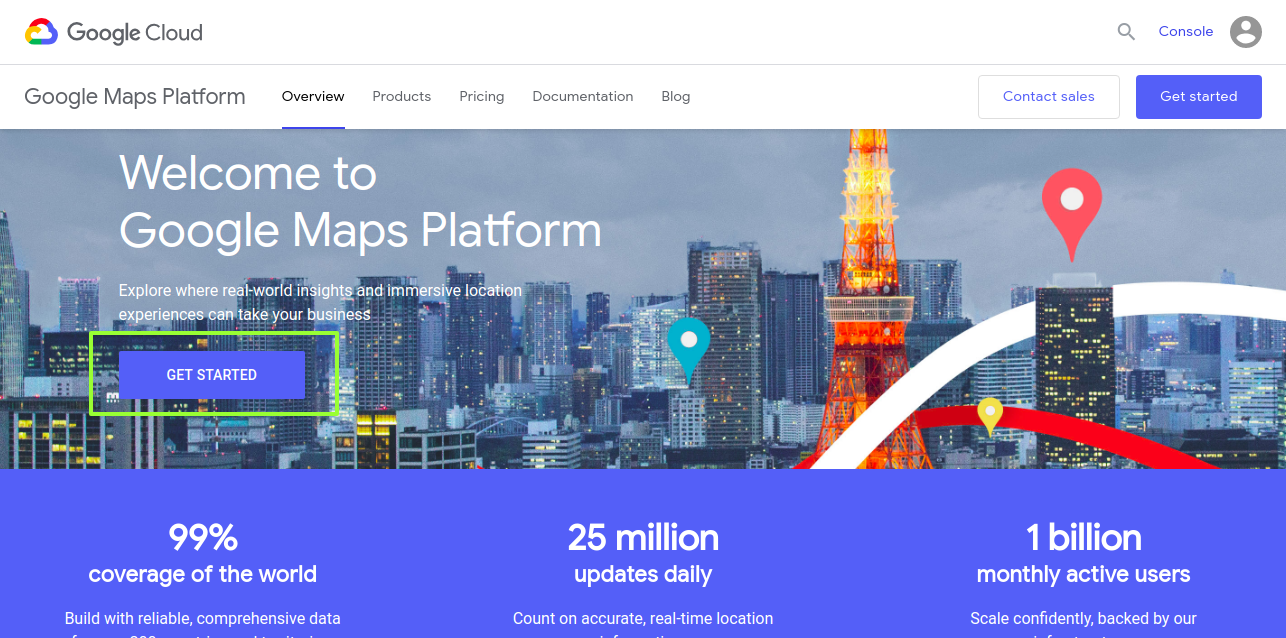 - To start, go to Google Maps Platform