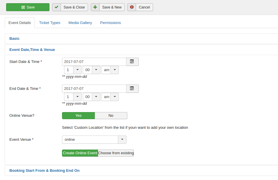- When you create the Venue - set the option ‘Online Venue’ to Yes