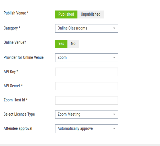 - Set the ‘Online venue’ to ‘Yes’