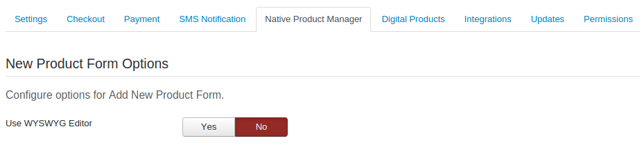Enables WYSIWYG Editor for Product Description field. This applies only for Native Product Manager.