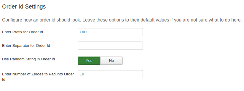 Allows setting the number of zeroes to be used in order id generation if needed. For example, Order id will look like OID-00022.