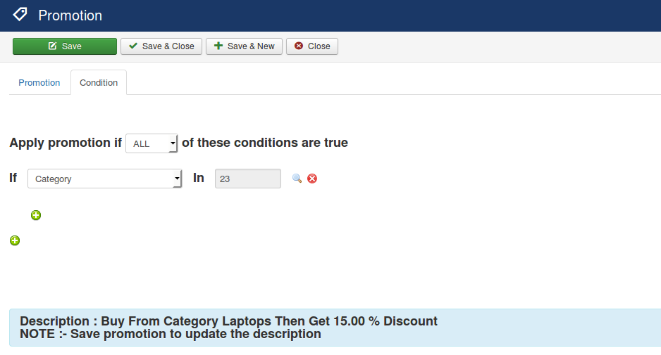 Adding conditions in promotions