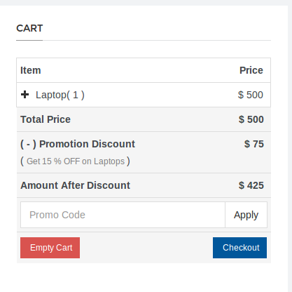 Now, each store owner can create the promotion for his store items. All the promotions which are created by store owner on store cart items.